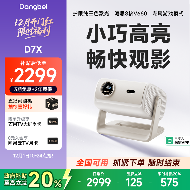 【重磅新品 全国国补立减20%】当贝D7X投影仪家用超高清小型便携激光电视高清高亮智能投影机手机投屏