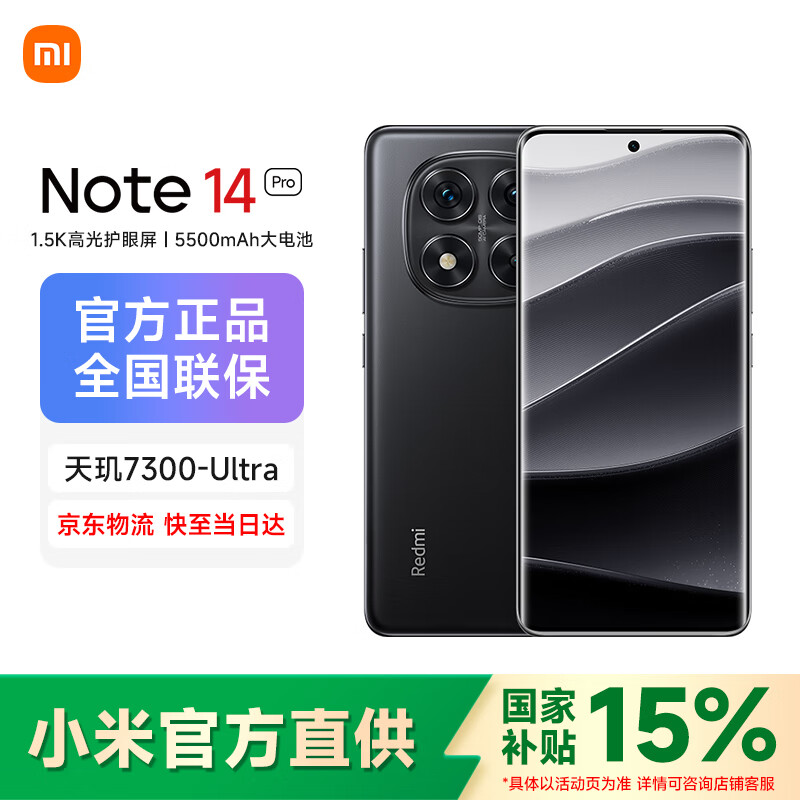 小米Redmi 红米Note 14 Pro 新品智能拍照5G手机 防尘防水 送爸妈手机长辈老年机推荐 子夜黑 8GB+128GB 官方标配
