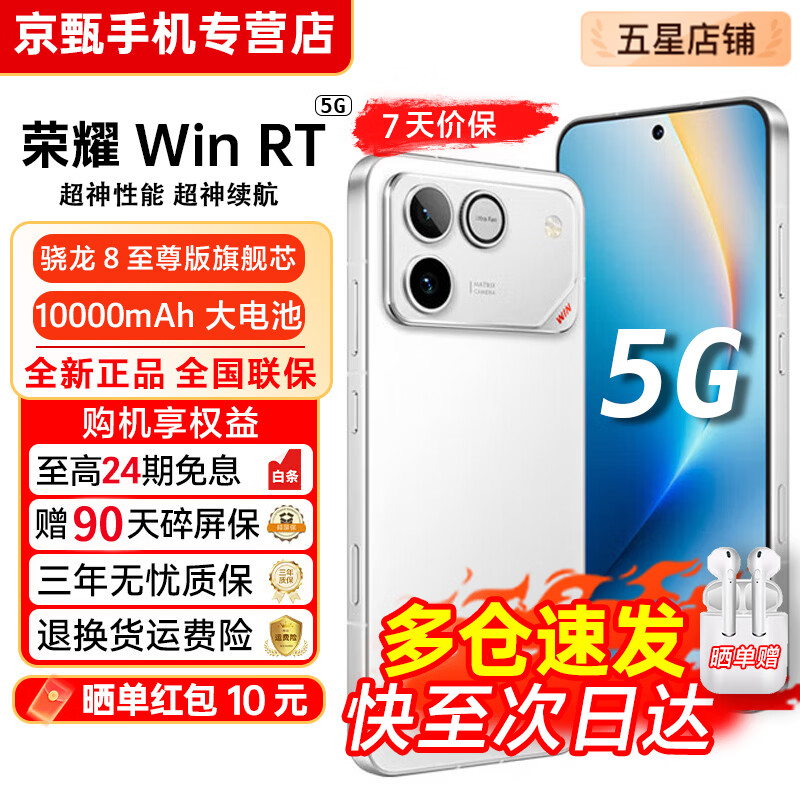 荣耀WIN/Win RT【24期免息】第五代骁龙8至尊版 东风涡轮散热10000mAh电池 AI 5G游戏手机学生白领 指定赢 12GB+256GB【win RT】 官方标配【赠2年店铺延保+90天碎屏保】