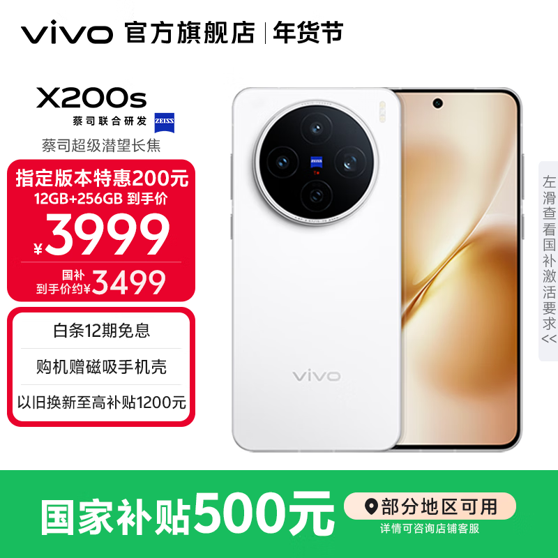 vivo X200s 蔡司超级潜望长焦 胶片Live人像 湿手秒开超声波指纹 6200mAh蓝海电池 天玑9400+手机 国补 直白 12GB+256GB 官方标配