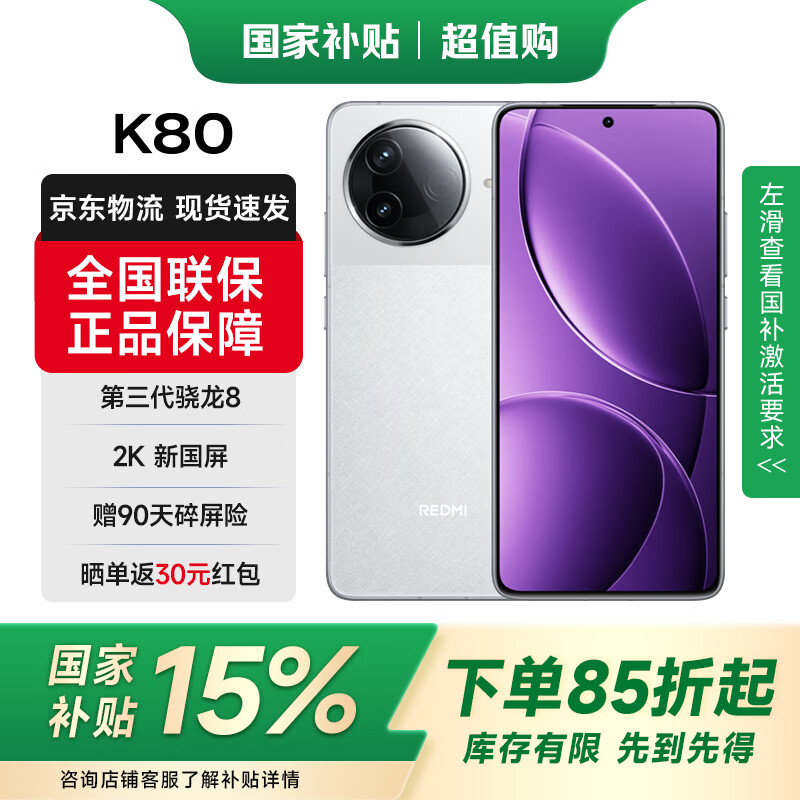 小米红米k80手机 国家补贴 REDMI新品5G手机 红米5G手机 12GB+256GB雪岩白 官方标配 全网通