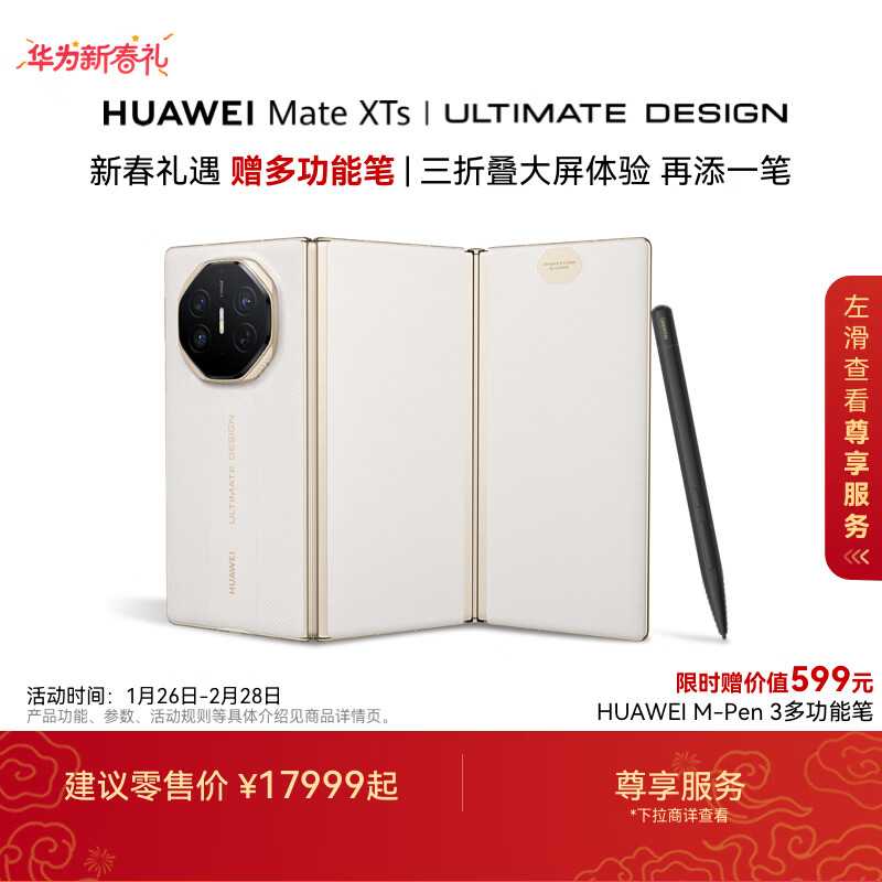 HUAWEI Mate XTs | ULTIMATE DESIGN 非凡大师 三折叠大屏生产力鸿蒙大屏AI 华为三折叠屏 智能手机 皓白 16GB+256GB