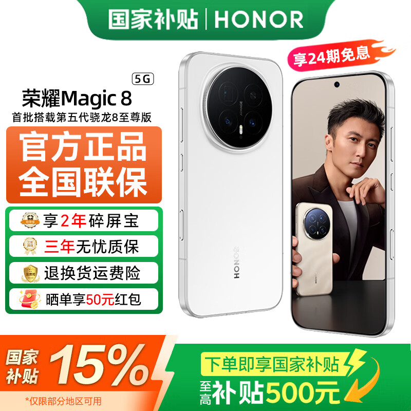 荣耀Magic8 【国家补贴15%】 第五代骁龙8至尊版 谢霆锋同款 超夜神长焦 新品5G手机 AI手机荣耀 雪域白 16GB+512GB 官方标配