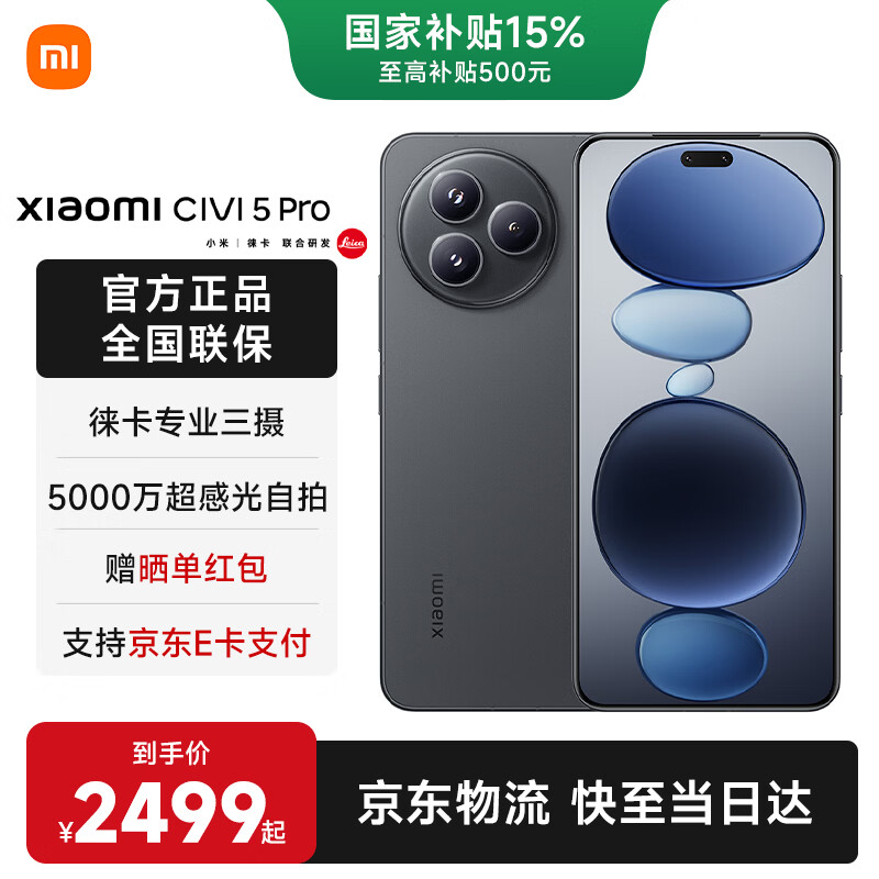 小米Civi 5 Pro【国家补贴】新品5G小米手机 黑色 12GB+256GB 国补专享