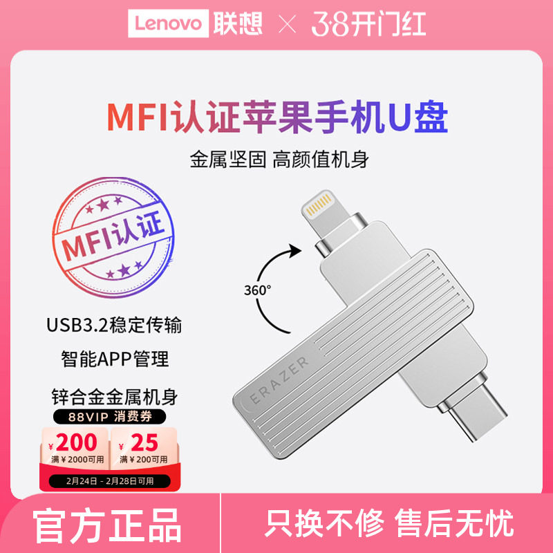 联想生态品牌异能者u盘usb3.2高速金属双接口苹果ios手机电脑优盘