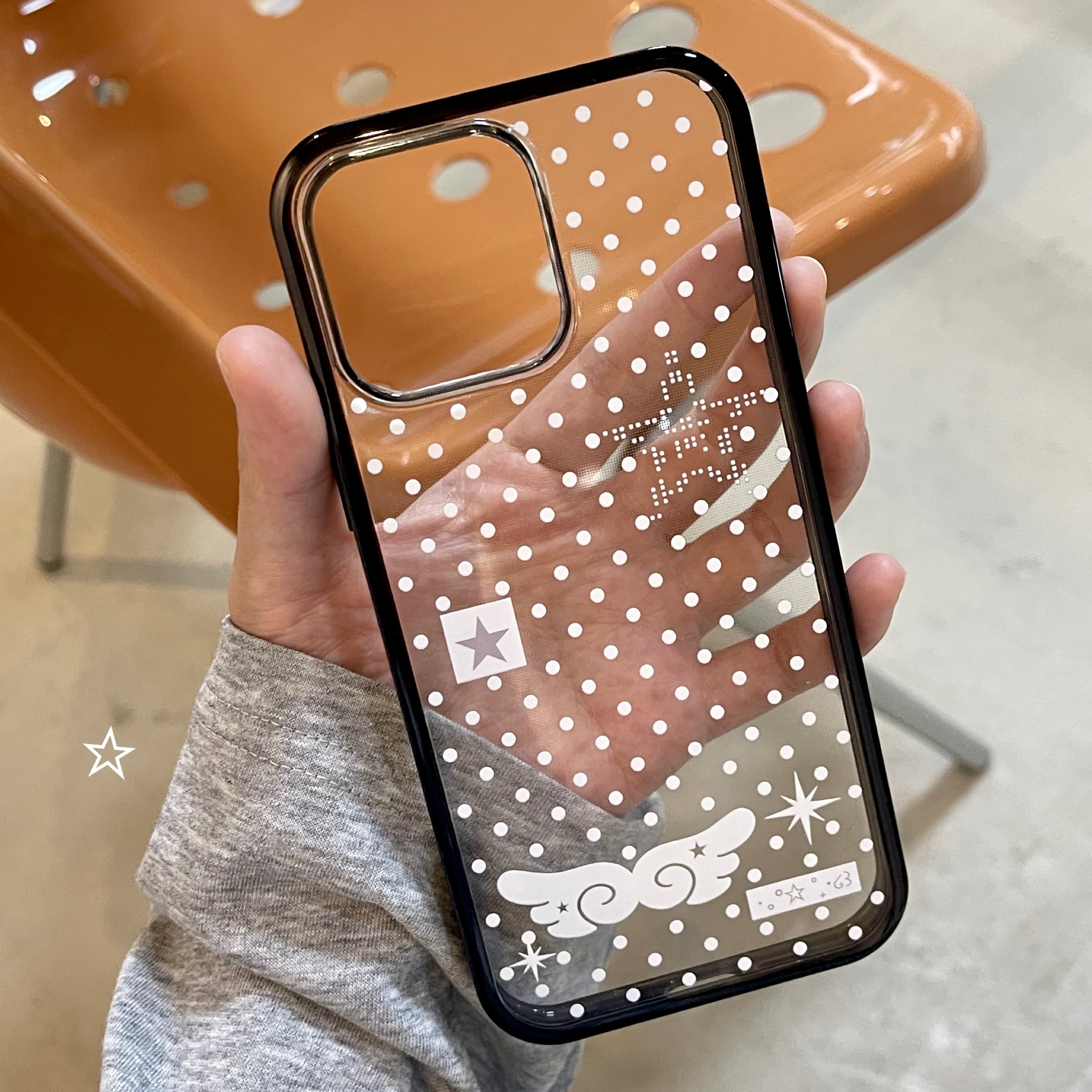 nanabear奈奈熊原创波点翅膀亚克力透明手机壳可放明星小卡拍立得韩系ins风黑边框适用于苹果17promax16pro15