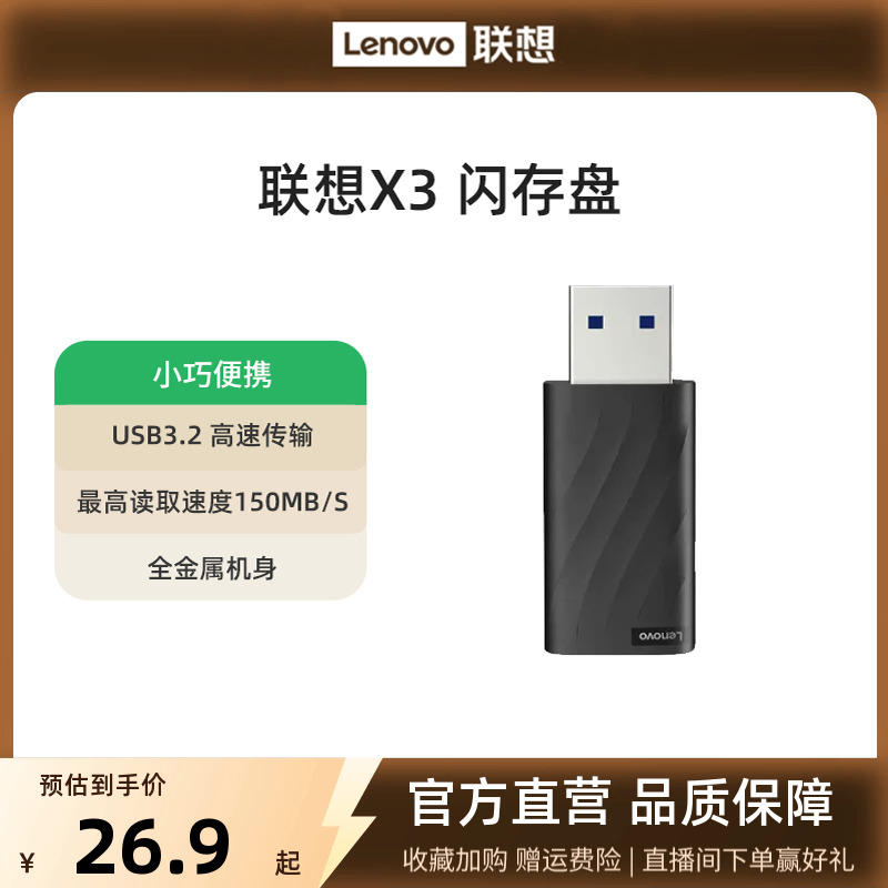 新品 联想128g金属X3 U盘64g高速大容量学生优盘电脑手机办公正品