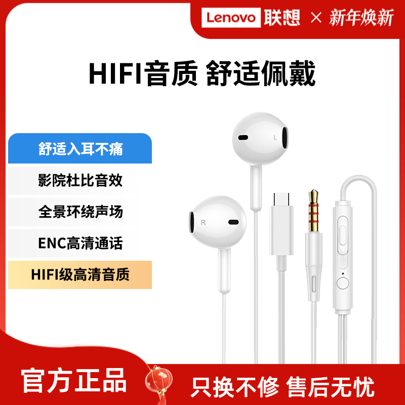 联想生态品牌异能者有线耳机半入耳式音乐高音质手机电脑通用*