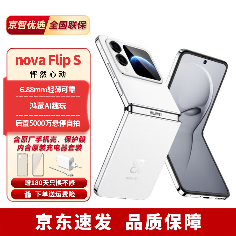 华为nova FlipS华为2025新品折叠手机 超轻薄鸿蒙系统 AI趣玩悬停自拍 自拍美颜 华为小折叠 零度白 12GB+512GB 【12期|免息】