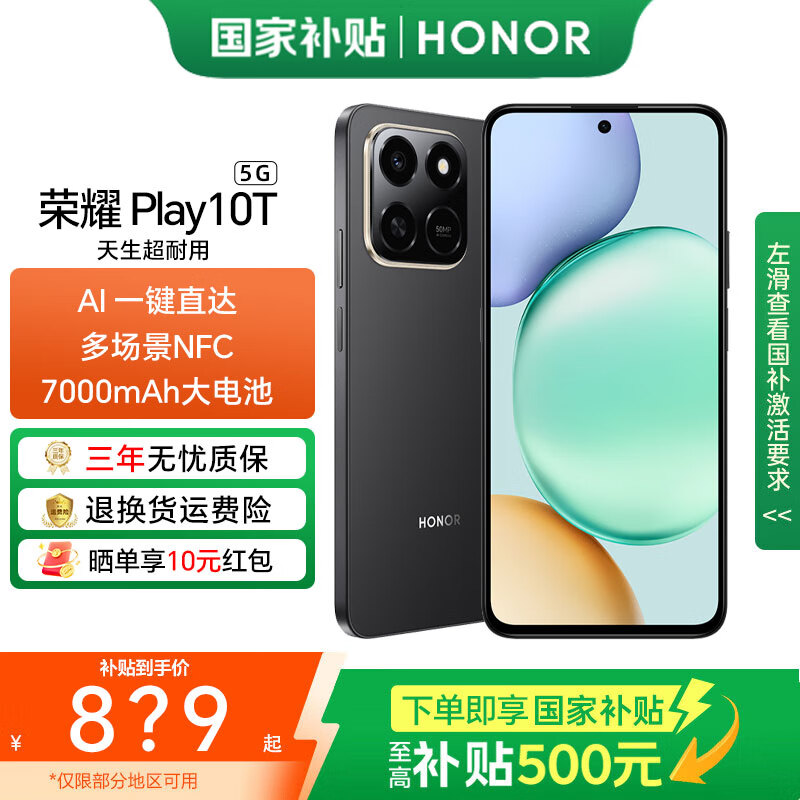 荣耀 Play 10T 新品5G手机 荣耀手机 幻夜黑 8GB+128GB 官方标配