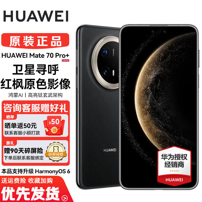 HUAWEI Mate 70 Pro+ 赠碎屏险 80W无线充电 华为新品鸿蒙旗舰AI手机 高亮钛玄武架构 红枫原色影像 墨韵黑 16GB+512GB 全新正品 神券专享 赠碎屏险