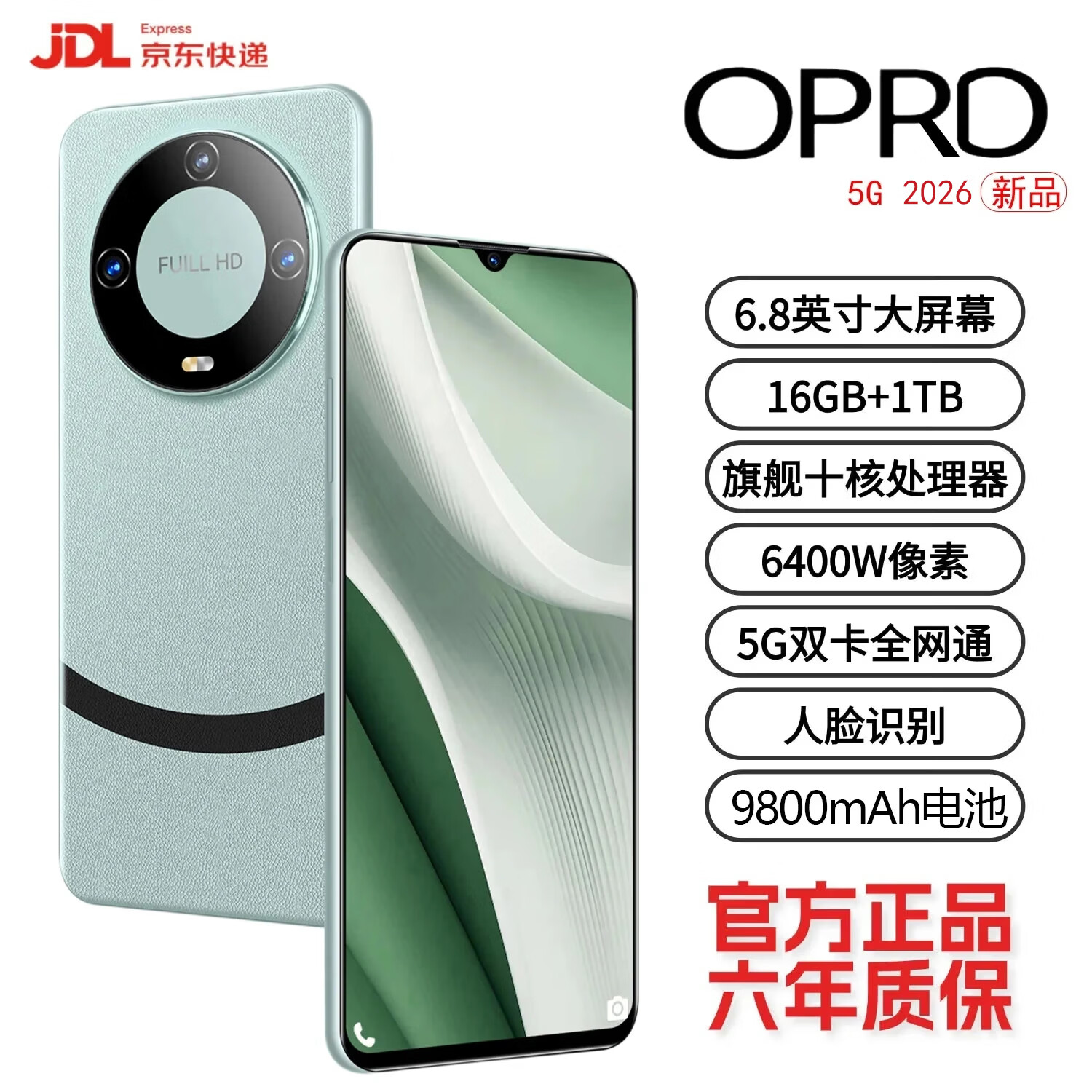 OPRDPro5G手机2026新品1TB大内存9800mAh快充大电池抗摔防水高清拍照骁龙888学生电竞老人AI智能 雅川青 16G运行+1024G(1TB)内存