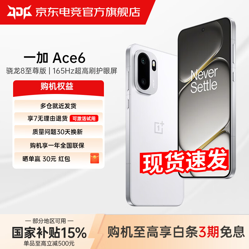 一加 Ace 6 骁龙8至尊版 165Hz 超高刷护眼电竞屏 oppo游戏电竞5G手机 MC31A 闪白 12GB+512GB 官方标配