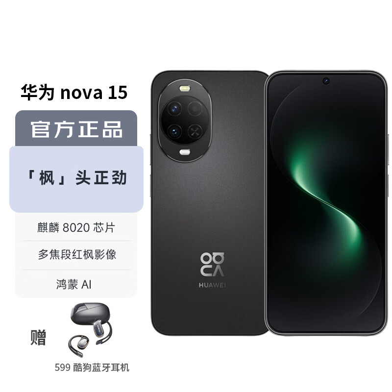 华为(HUAWEI)nova 15 256GB 幻夜黑 麒麟8020芯片 多焦段红枫影像 鸿蒙AI 臻彩OLED直屏鸿蒙智能手机