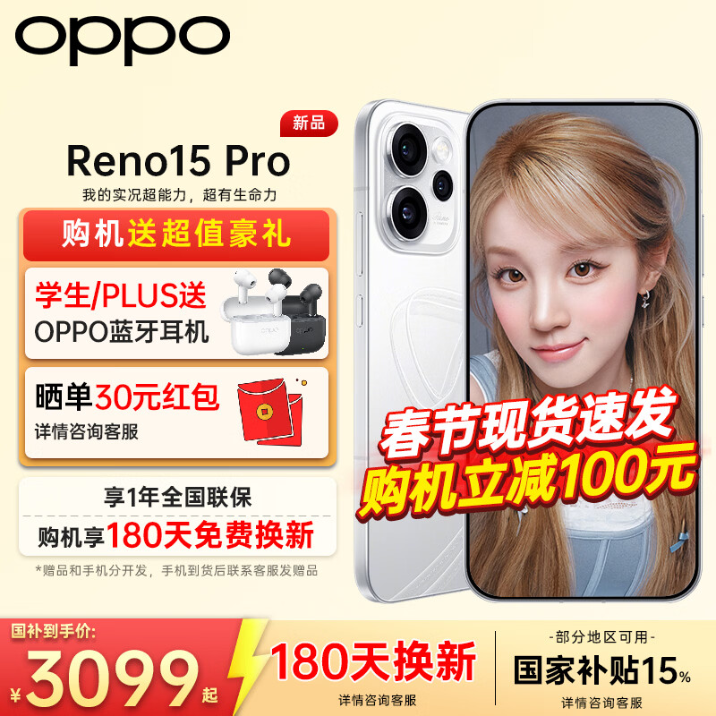 OPPO【国家补贴+12期】OPPO Reno15 Pro 直播神器手机新款 opporeno15pro 全网通5g拍照学生手机oppo 星光蝴蝶结 16GB+512GB 官方标配【全国联保】