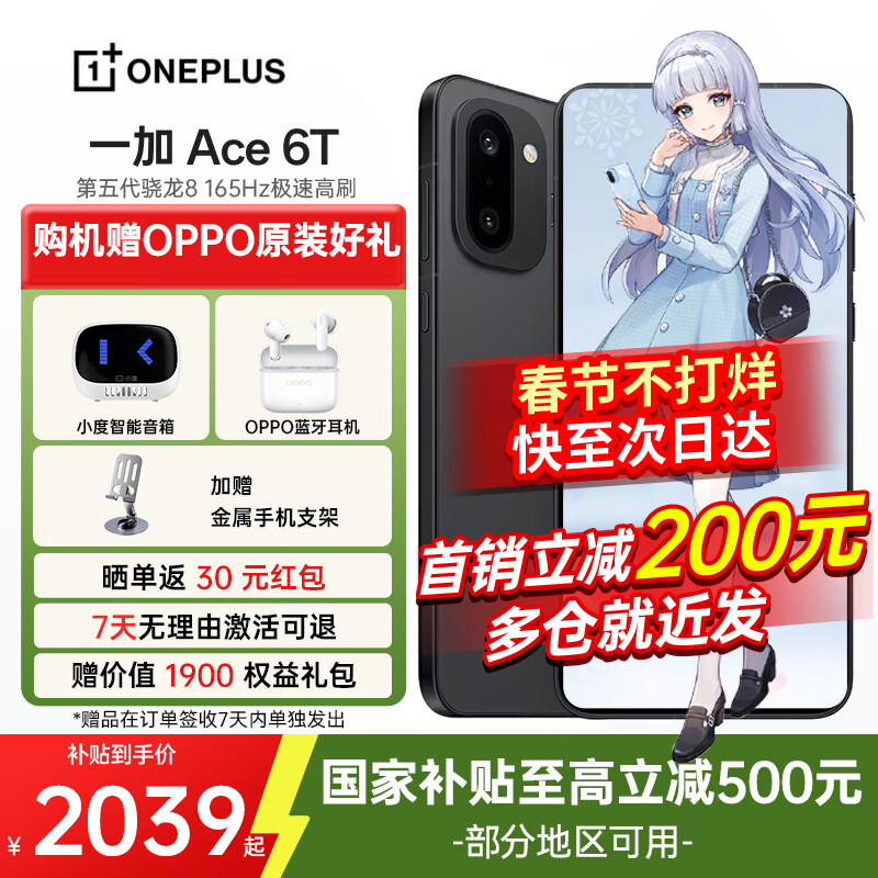 一加 Ace 6T 【国家补贴】第五代骁龙8 性能旗舰 新品5G游戏手机智能 闪速黑 12GB+256GB 活动专享