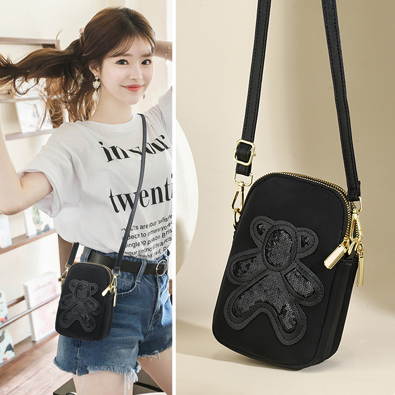 手机包女斜挎2025新款小熊亮片网红超火小包包布包竖款逛街小挎包