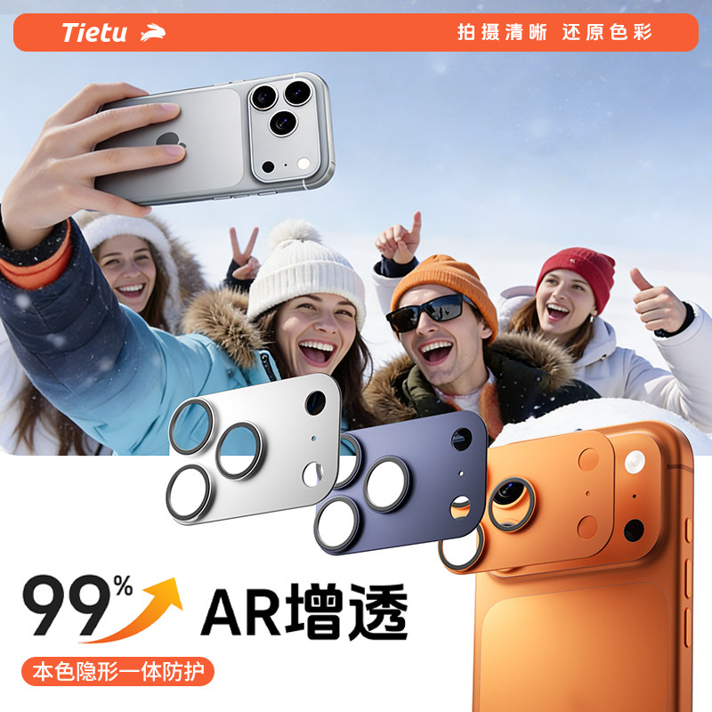 铁兔适用苹果17promax镜头膜【99%增透AR抗反射】一体式全覆盖iphone16pro max手机鹰眼摄像头保护防摔盖pm