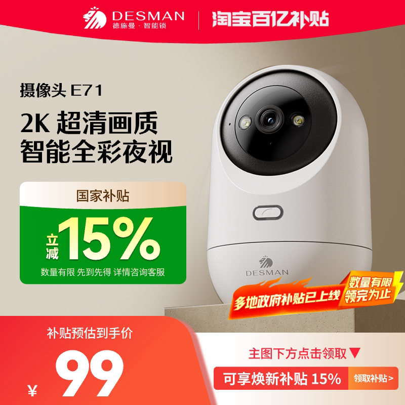 德施曼摄像头智能监控家庭家用远程手机360度无死角室内E71