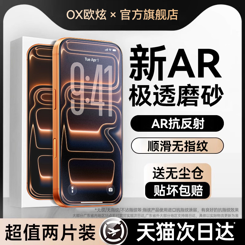 欧炫适用苹果17promax磨砂膜16promax钢化膜15手机膜14全屏13磨砂钢化膜12电竞11防指纹plus贴膜air新款防窥