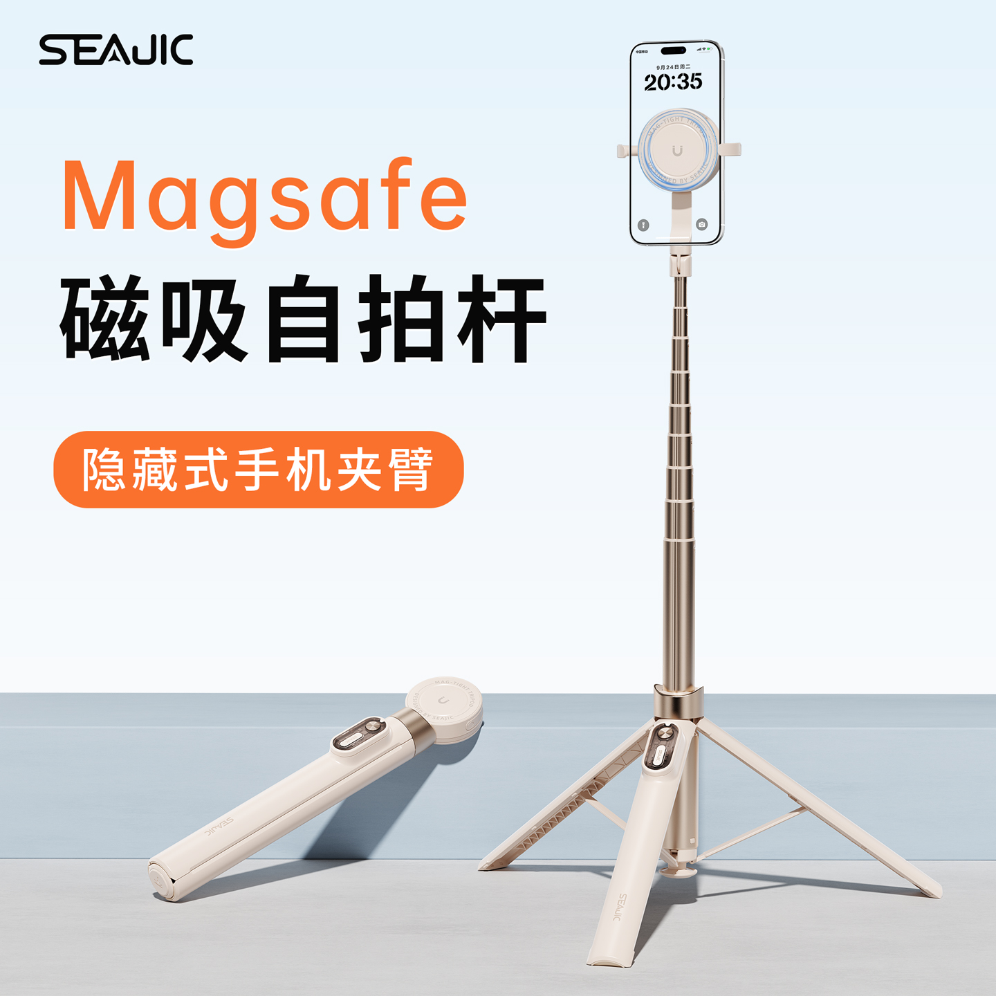 SEAJIC施吉客落地开磁吸自拍杆2025新款通用手持自拍神器旅游便携手机拍照支架丢丢杆落地三脚架演唱会支架