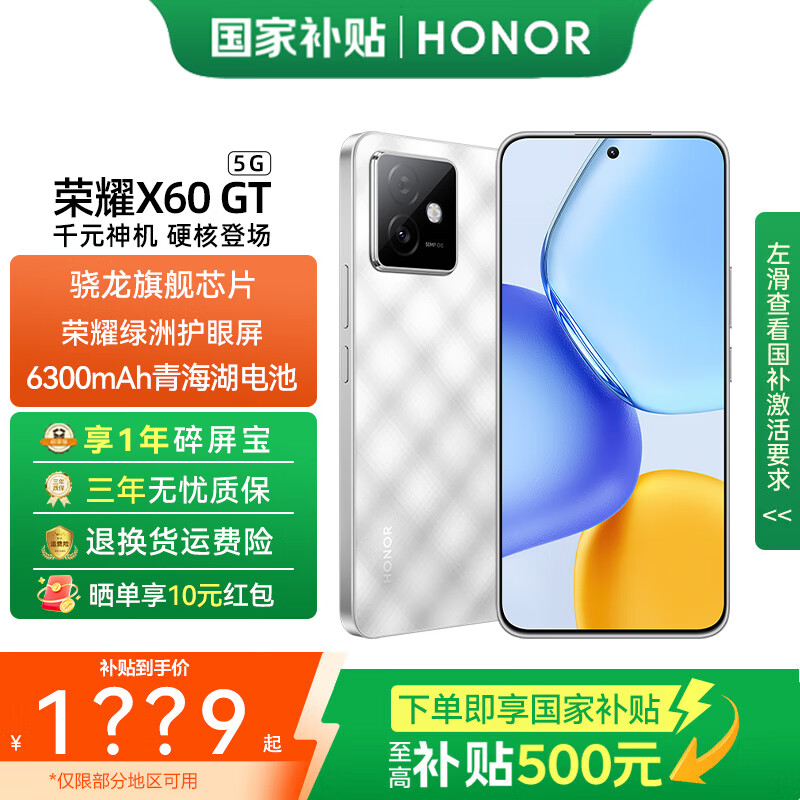 荣耀X60 GT 【国家补贴15%】5G手机 骁龙旗舰芯片 6300mAh青海湖电池 钛影银 12GB+256GB 官方标配