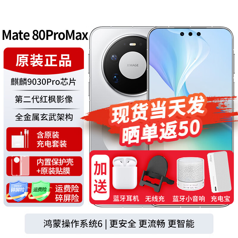 华为mate80promax【24期免息】麒麟9030Pro新品鸿蒙AI手机全金属玄武架构超透亮灵珑屏2025年上市 极地银 16GB+512GB 免息版本24期