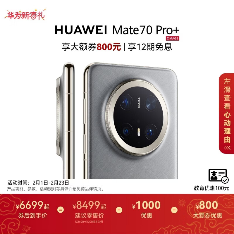 HUAWEI Mate 70 Pro+ 鸿蒙AI 高亮钛玄武架构 红枫原色影像 华为智能手机 金丝银锦 16GB+512GB