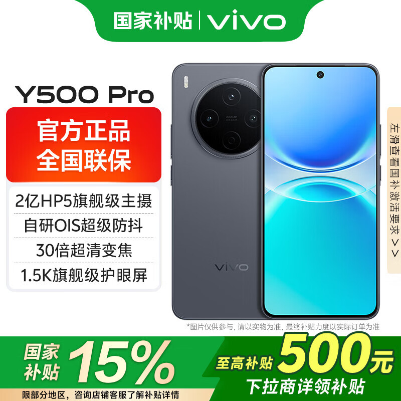 vivo Y500 Pro国家补贴 手机5G新品上市 2亿HP5旗舰级主摄 持久流畅OriginOS 6拍照美颜长续航 钛黑 12GB 512GB 官方标配版