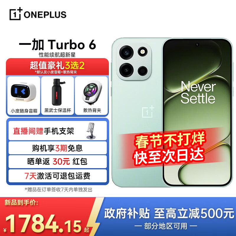 一加 【国家补贴】Turbo 6 性能续航超新星 新品5G游戏学生手机 旷野青 12GB+256GB 官方标配