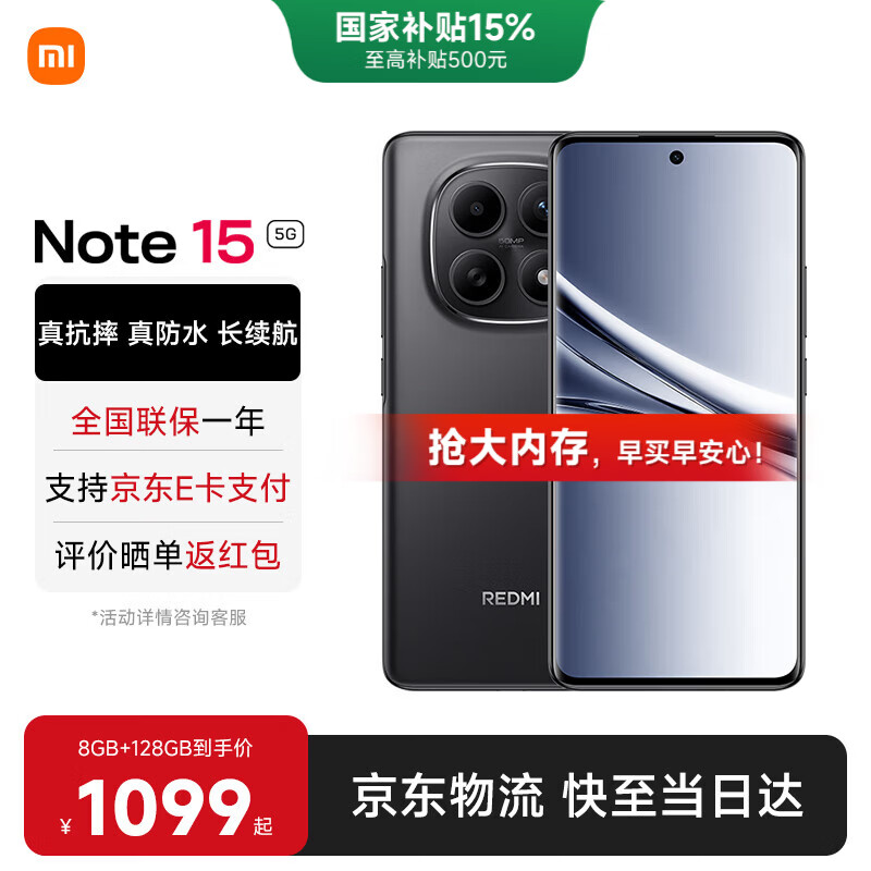 小米REDMI 红米note15 国家补贴 新品5G小米红米手机 子夜黑 8G+128GB 【官方标配】