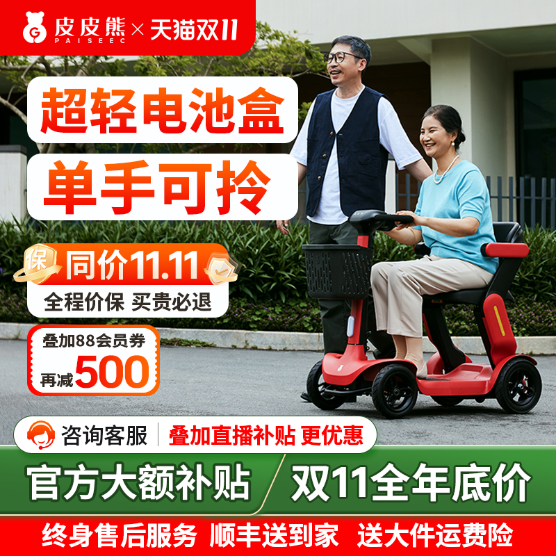 皮皮熊高端老人代步车智能可折叠老年四轮电动车手机智联远程可视