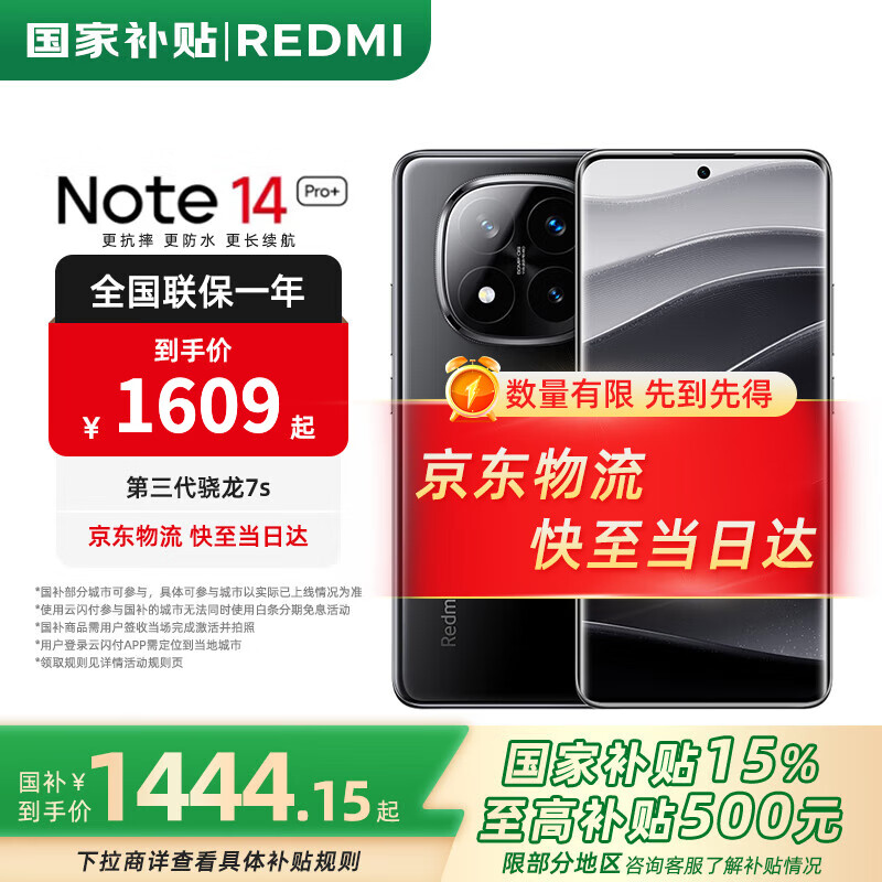 小米红米note14pro+【国家补贴15%】 新品5G小米红米手机 子夜黑 12GB+256GB