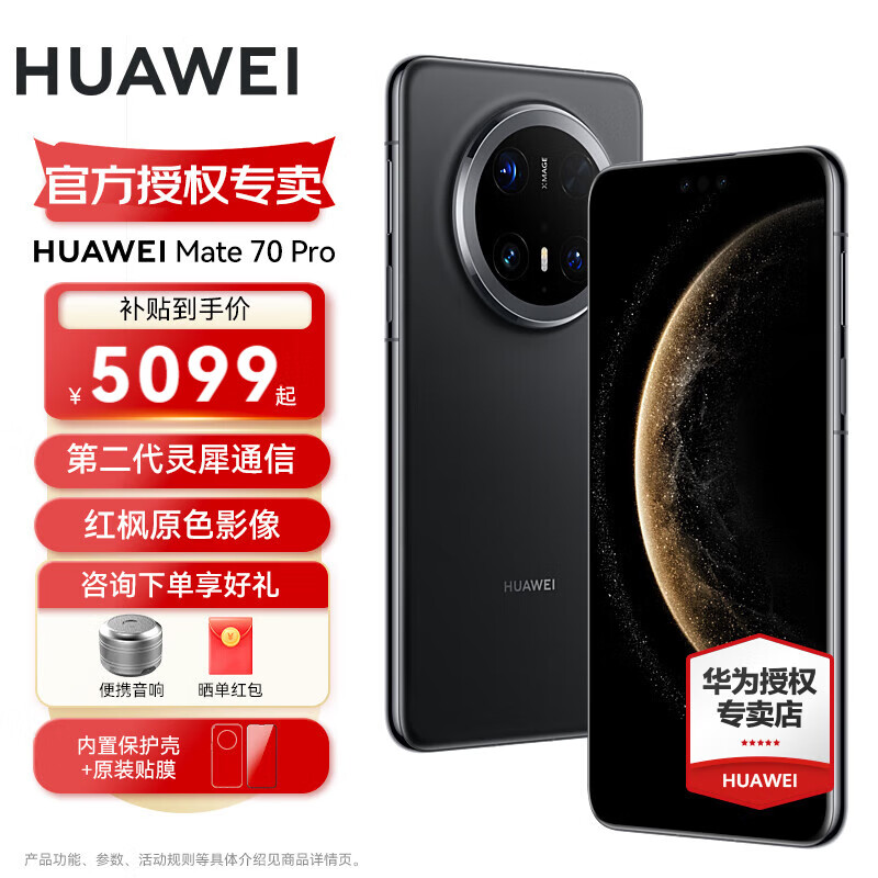 HUAWEI Mate 70 pro 新品上市 华为mate70pro手机 鸿蒙AI 红枫原色影像 超可靠玄武架构 曜石黑 12GB+512GB 官方标配