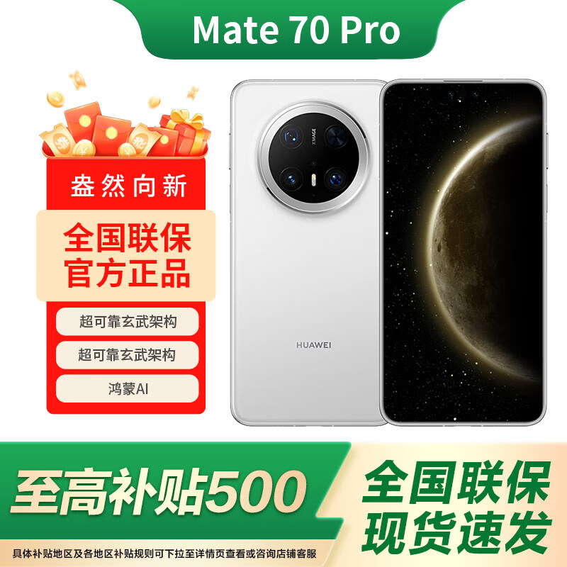 华为(HUAWEI)【补贴专享 】华为 Mate 70 Pro 新品旗舰手机 雪域白 12GB+512GB【优享鸿蒙NEXT先锋版】 官方标配