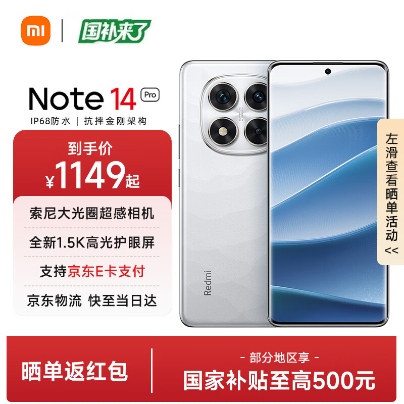 小米REDMI 红米Note14Pro 国家补贴 新品5G小米红米手机 镜瓷白 12GB+256GB