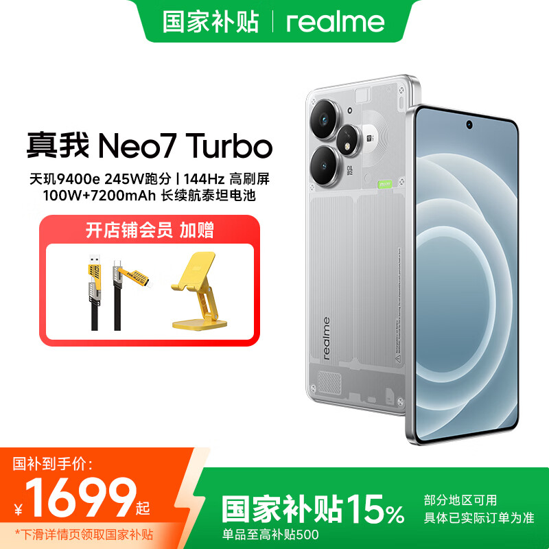 真我(realme)OPPO真我 Neo7 Turbo 天玑9400e 超薄续航大电池144HZ高刷护眼直屏 智能游戏AI性能手机 透明灰 12GB+256GB