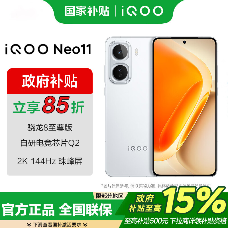 vivo iQOO Neo11 国家补贴 7500mAh超薄蓝海电池 2K 144Hz珠峰屏骁龙8至尊版 iqooneo11 学生游戏手机 驰光白 12GB+512GB 官方标配