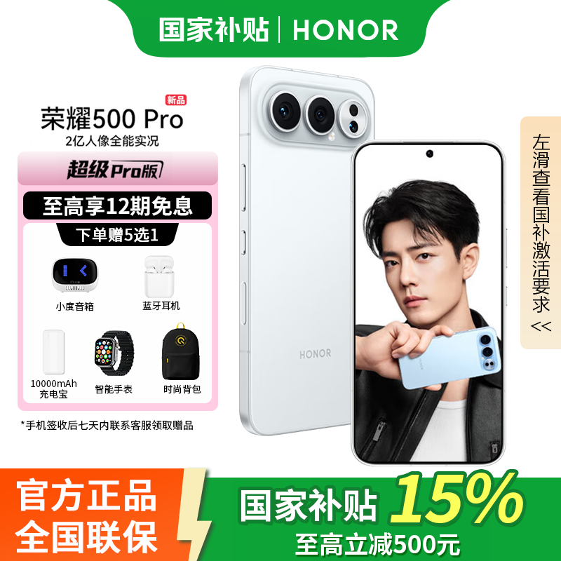 荣耀500 Pro 新品5G手机 【肖战同款】超级Pro版 2亿人像全能实况 月光银 16GB+512GB 官方标配