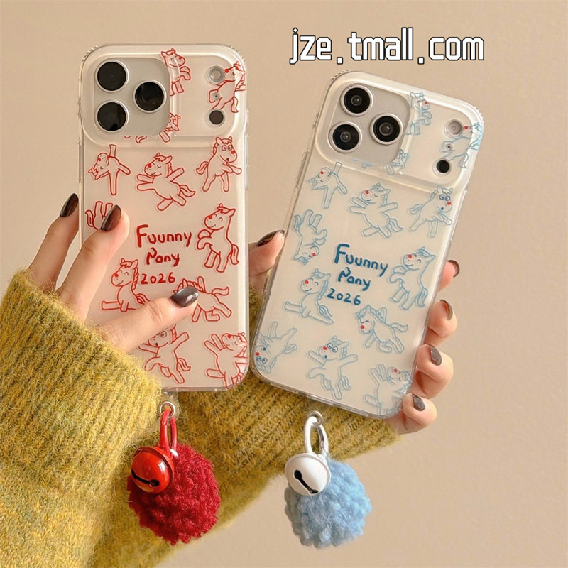 jze 小众红蓝线条手绘卡通小马适用苹果17ProMax手机壳iphone15新款16pro女13双层15pro全包防摔保护套14创意