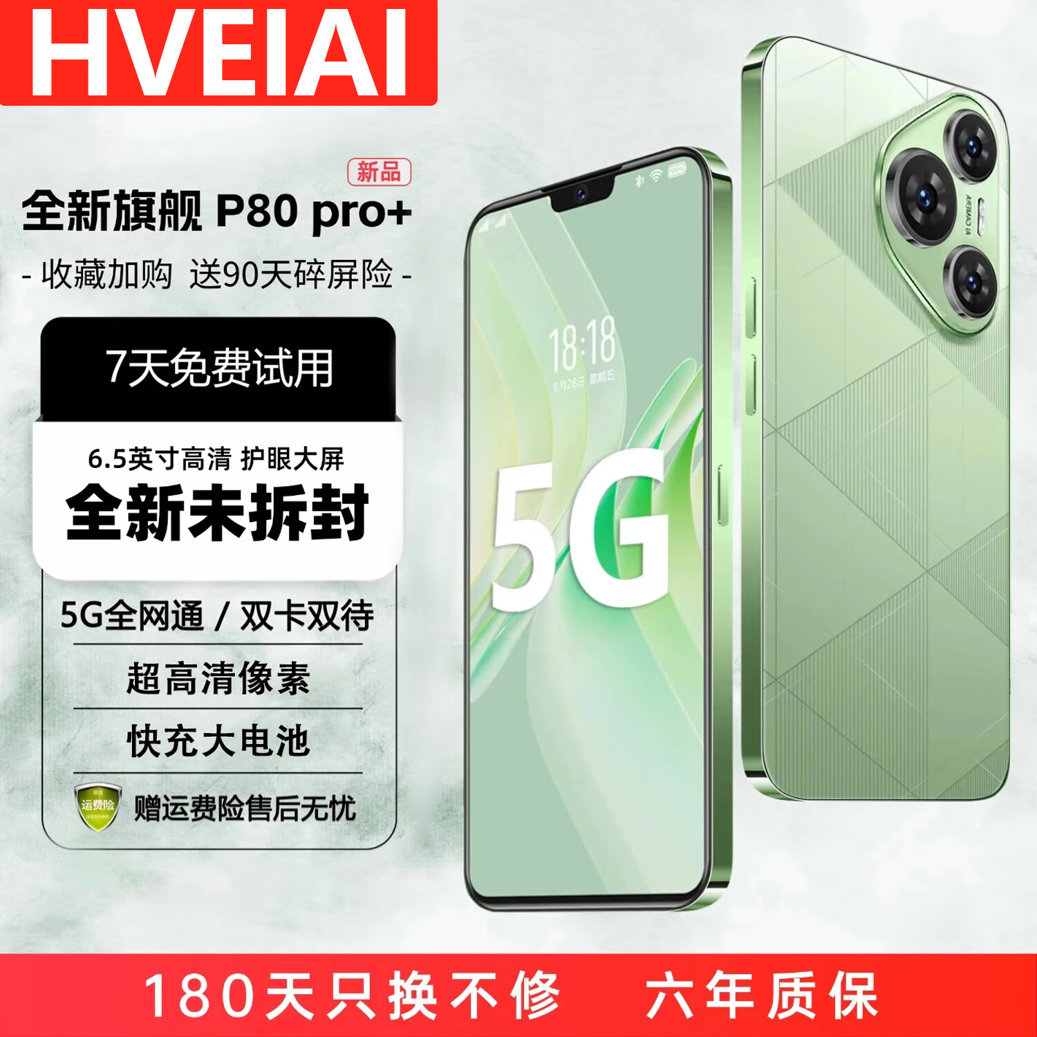HVEIAI手机1TB大内存2025全新一代超高性能全网通5G双卡7800mAh快充长续航拍照十面抗摔全国质保6年 香颂绿 8GB+128GB 官方标配