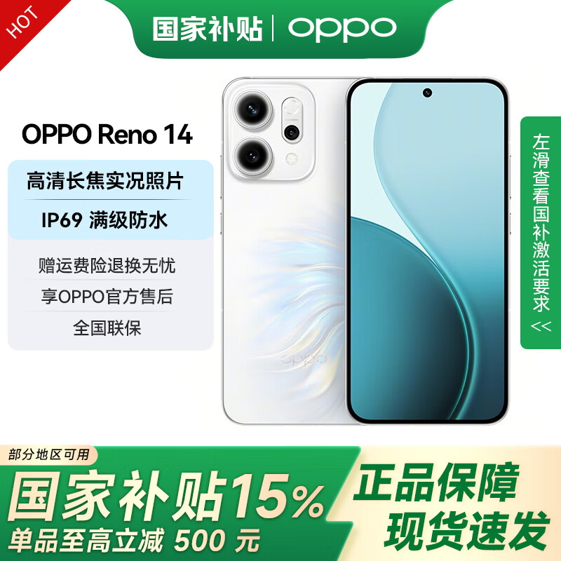 OPPO Reno14 【国家补贴】高清长焦实况照片 Live图神机 新品5G智能学生拍照AI手机 人鱼姬 16GB+512GB 官方标配
