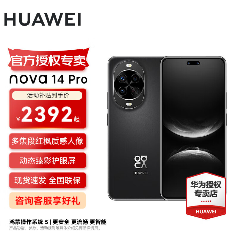 华为nova 14 Pro 国家补贴 鸿蒙AI 多焦段红枫质感人像 鸿蒙智能手机 羽砂黑 12GB+512GB 官方标配
