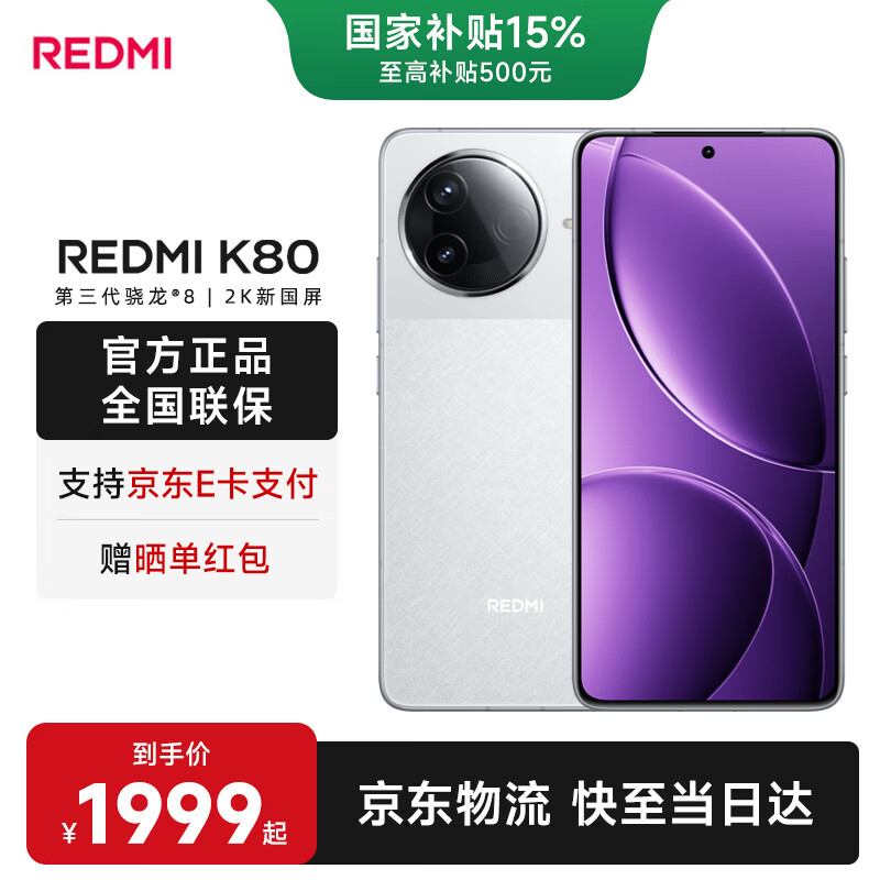 小米红米K80【国家补贴】 新品5G小米红米手机 雪岩白 12GB+256GB 官方标配