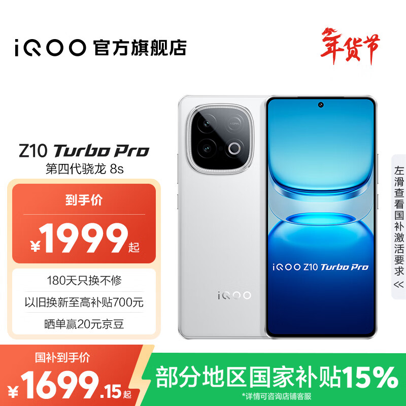 vivo iQOO Z10 Turbo Pro 国家补贴 第四代骁龙8s 自研电竞芯片Q1 等效7000mAh超薄蓝海电池 游戏手机 云海白 12GB 512GB 官方标配