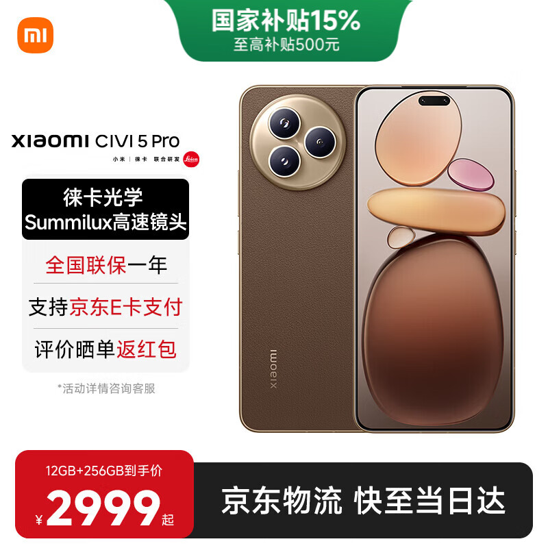 小米Civi5 Pro 国家补贴 第四代骁龙8s小米手机 徕卡光学 小米civi5pro新品手机 冰美式 12GB+512GB 【官方标配】