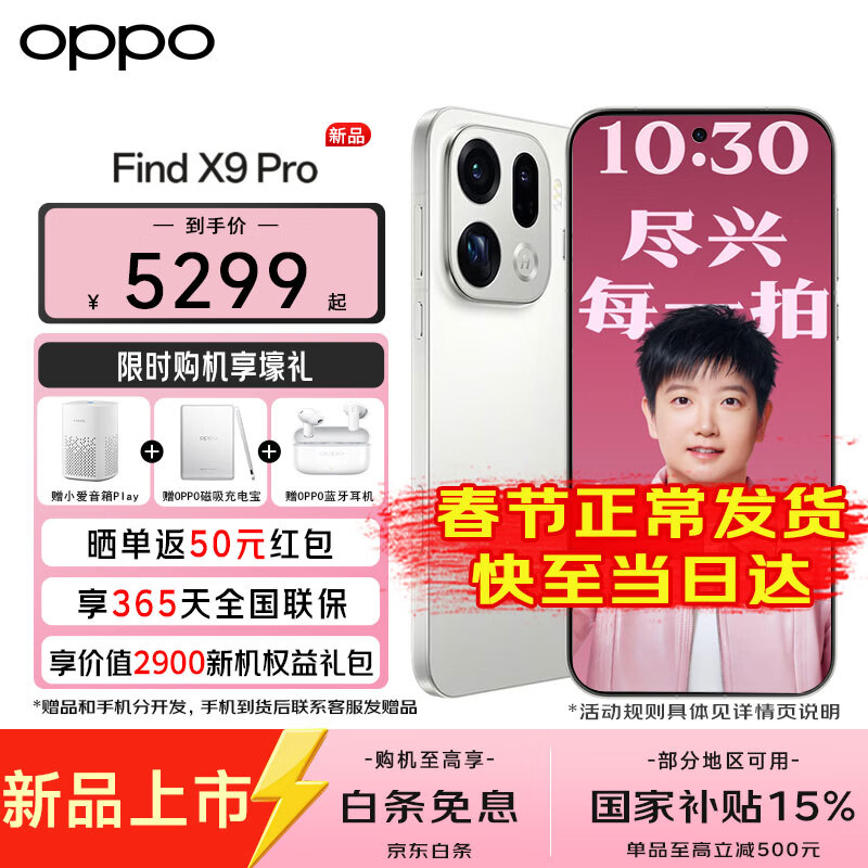 OPPO【国家补贴减15%】OPPO Find X9 Pro 旗舰手机 oppo find x9 pro新品 哈苏2亿长焦镜头 5G旗舰手机 霜白 16GB+512GB 官方标配【好礼三选一】