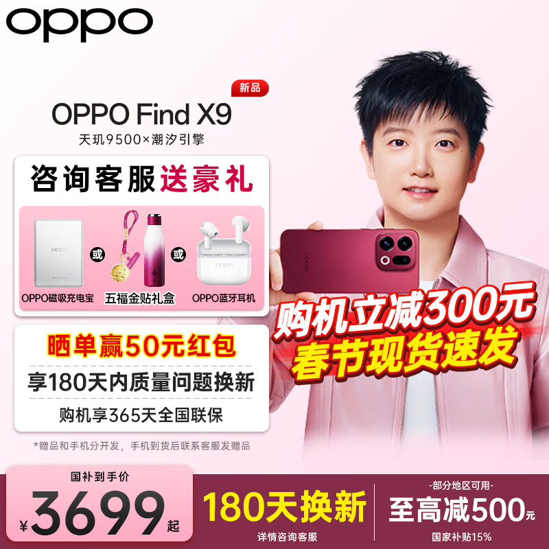 OPPO【咨询有礼】OPPO Find X9 全新旗舰手机 4K实况照片天玑9500 全网通5G 智能 拍照手机 孙颖莎同款 追光红 12+256GB 官方标配【OPPO壕礼3选1+智能音响】