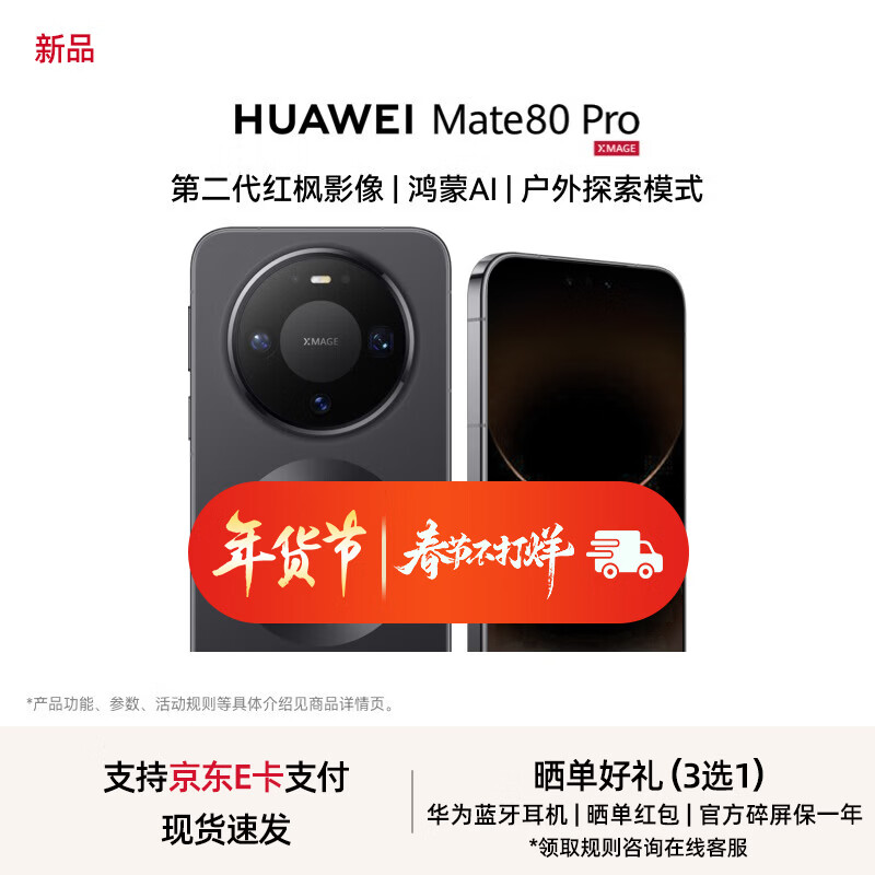HUAWEI Mate 80 Pro 第二代红枫影像 鸿蒙AI 户外探索模式 华为直屏鸿蒙手机 曜石黑 12GB+512GB 官方标配
