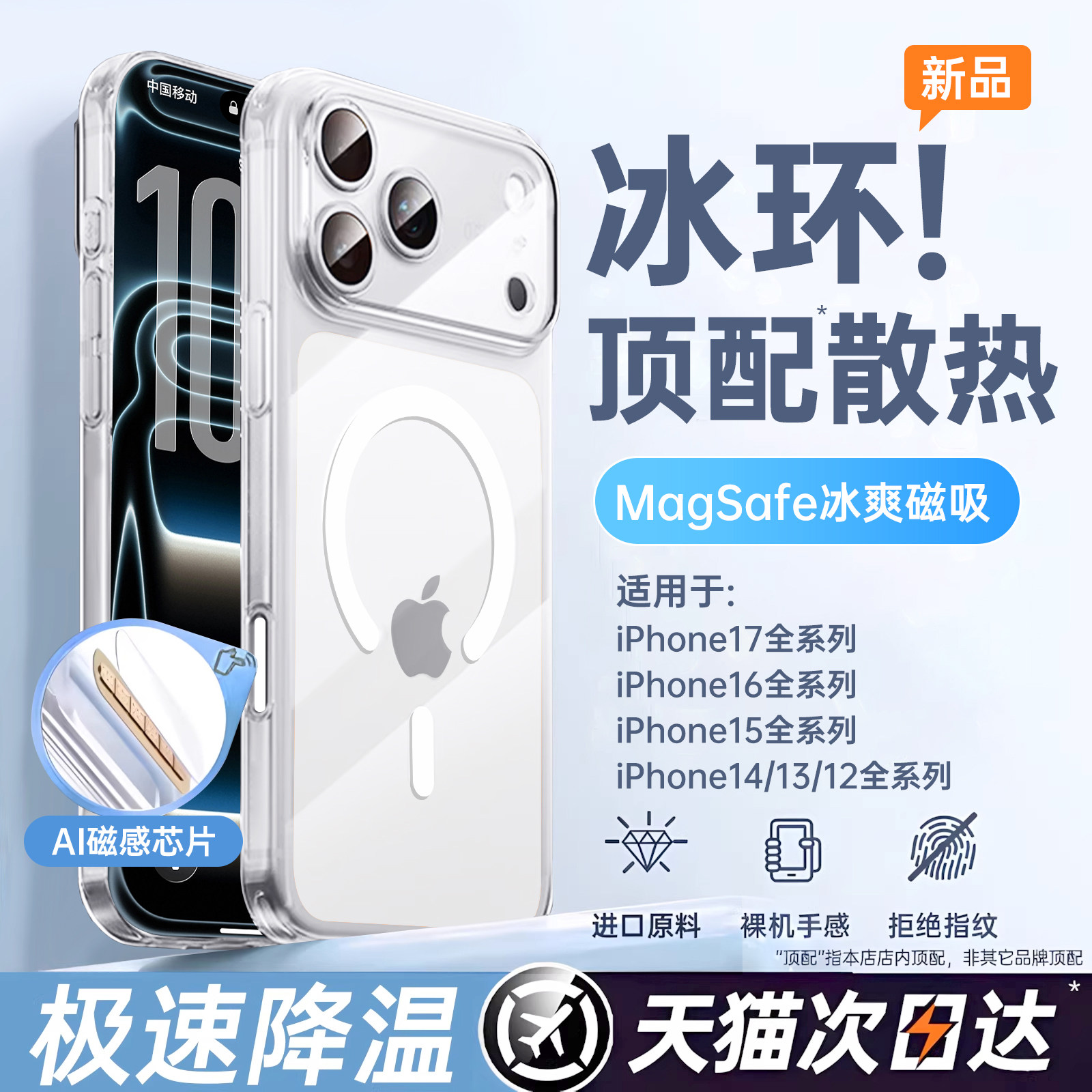 【顶配冰环散热】新款磁吸第一卫适用苹果17promax手机壳iPhone16pro透明15超薄防摔14保护套13全包Magsafe女